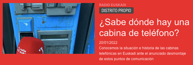 Según datos proporcionados por Telefónica, actualmente resisten en pie 532 cabinas en toda la Comunidad Autónoma Vasca y otras 190 en la Comunidad Foral Navarra. No obstante, se supone que en poblaciones de más de mil habitantes se debe disponer de al menos una cabina y de otra adicional por cada 3 mil ciudadanos.. Al menos, es lo que establece la Ley de Telecomunicaciones… Pero el teléfono móvil ha reducido el uso de las cabinas durante la última década hasta el punto de que cada cabina sólo se utiliza una vez por semana de media.